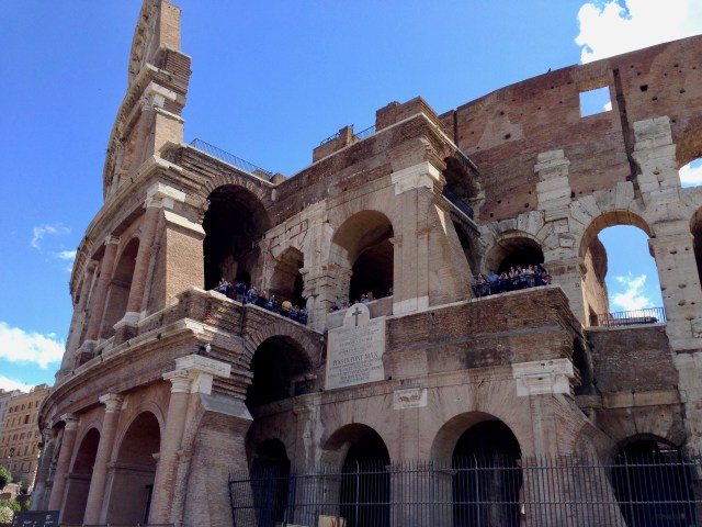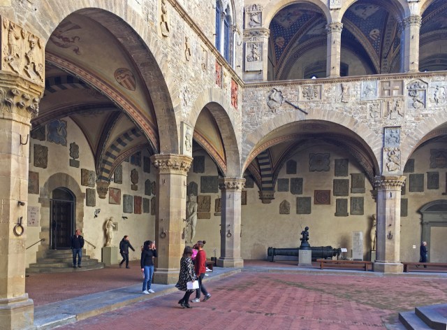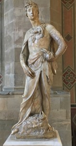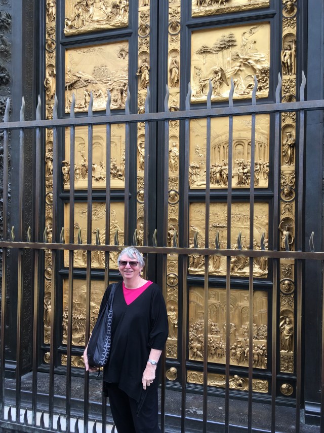 It is very nearly complete, a couple of blocks of marble still await conversion to sculptures. Meanwhile, natural forces are working strongly in the direction of decay. Inside and out, teams of hard hats work high on the scaffolding, restoring and repairing. Such is the program of their work that they have to continually move on, leaving the ornate marble only partly cleaned and restored. It is likely to be some time before the Duomo stands clean and complete, free of scaffolding and hard hats. At the top of the Duomo, the heavy marble roofing tiles sit in stark contrast to soaring spindly spires crowned with statues of the saints, not teetering, just comfortably at home in the sky.