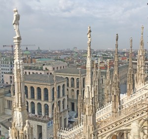 The big three of Milan, La Scala, the Vittorio Emanuel Emporium, and the Duomo, stand together in the middle of town. The Duomo is totally overwhelming. But then, it has had quite a few hundred years to arrive at this point.