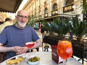 At the majestic Vittorio Emanuel II Emporium, a sea of shoppers and lookers swells past the boutique salons, while we sit in the smug comfort of the famous Camparino Bar, sipping Aperol Spritz and Italian Sours. And further along the street it is possible to lounge, sipping and supping on the rooftop of the swish La Rinascente department store while checking out the Saints across the street on their spires of the Duomo.