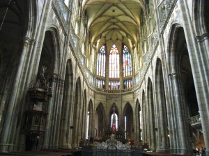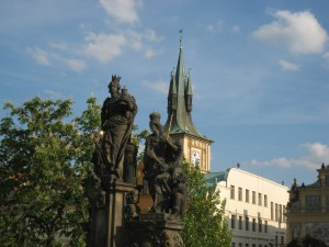 Along from the classy shopping mall is the old town square with its famous 600 year-old astronomic clock. And on the other side of the square, the Tyn church. Nothing tinny about this church. Tyn is an old Czech word for enclosure, referring to the surroundings. The protestant Hussites occupied the church from the 15th cent till the recatholicisation in the 17th cent. From that period gilt baroque trimmings abound from the 1673 Mundt organ to the 19 altars and side chapels. The no photography rule is respected here, reminding that this, after all, remains a place of worship. On the other hand, in the St Vitas cathedral there are clear no photography signs which are totally ignored in the babble and thrust of the tourist hoard – clearly a popular place, but not really sacred. No photography allowed in the Obecni Dum either, but photography permission may be bought for 55 Koruna. However, photographers enjoy an open season on the old heavily ornamented Charles IV bridge, lined with souvenir, craft and caricature sketching stalls.