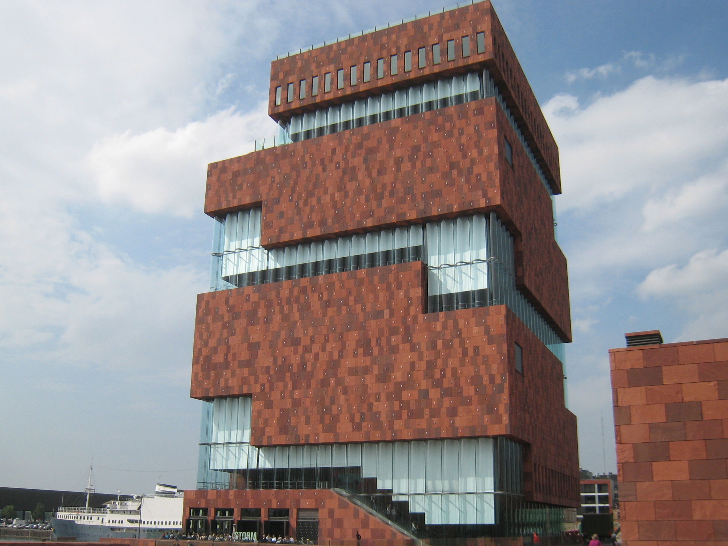 The Mas museum had only open for 4 days when we called, coffee shop not even open yet. But striking architecture, ten story high brick cube with spiral façade of wrinkly glass, giving the appearance of a Jenga tower about to collapse.