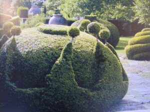 “The Prince”, she says, has 14 gardeners to put his vision into practice. Leading up to the house is an avenue of 14 yew trees. Seems that each gardener has the opportunity to sculpt (what is the verb for topiary) a tree according to individual taste.