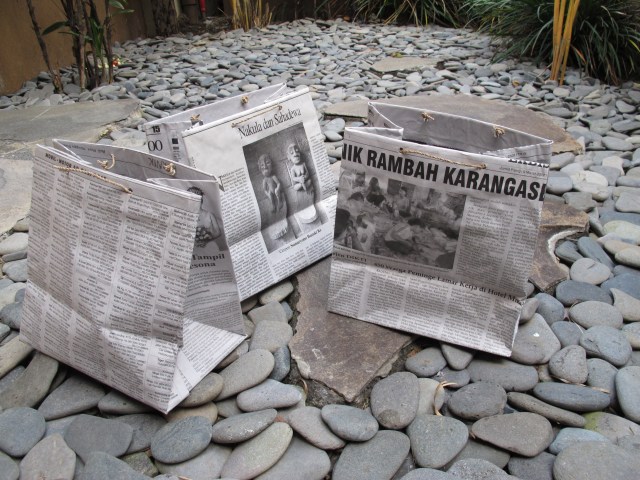 “Oc health and safety” regulation has a lot to answer for. In the olden days when recycled newspaper was used to wrap meat and fish & chips, did anyone ever die of newspaper poisoning? Many kids had their first taste of entrepreneurship by collecting and cashing in old bottles and newspapers. Bali has raised recycled newspaper to an art form.