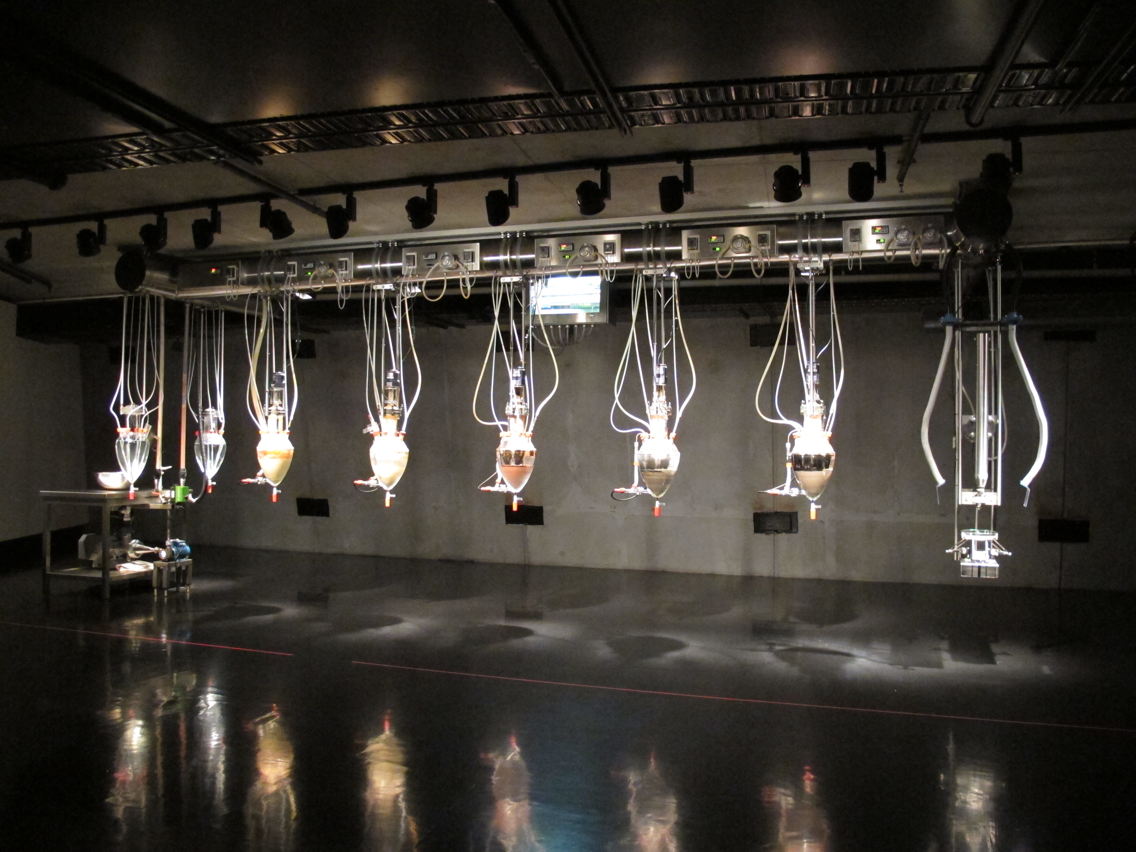 One of the most popular and famous exhibits in the museum is yet another Delvoye creation. Cloaca is essentially a replication in glassware and plumbing of the digestive processes of the human body. Yes, the poo machine. The machine is fed twice daily by way of an ‘Insinkerator’ that masticates normal food. There is a daily toilet time that attracts a large apprehensive audience.