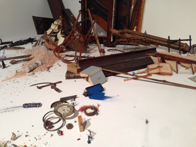 Venice is awash with art, and not only at Biennial time. Art appears in the venues, the Palazzos, the Galleries, shops and in the public domain. Art of every conceivable style and medium. At the Giardini many nations have permanent pavilions that usually have plenty of space to showcase the work of their currently chosen artist. And then there is the Arsenale, the high altar of the Biennale.  The Arsenale was where ships were made for about 500 years. In the olden days when the Venetian fleet extended to about 3000 boats, The Arsenale could turn out a complete galleon in 24 hours. Consequently, the covered in space is very wide, very high and very very long. Inspiring sculptors to make huge and very impressive creations. Media include wood, clay, metal, textile, video, performance and all of the visual arts. The exhibits by turns can inspire, intimidate, challenge, annoy, encourage, stimulate,  bore and even make you smile. Yes, but is it art? There are a number of installations, including videos, that are in effect a collection of found objects. In another context, they could simply be seen as rubbish and swept up accordingly. Around the streets, there have occasionally been piles of rubbish that might have enjoyed critical acclaim if placed on the clean marble floor of a Palazzo. It is often difficult to know. To be fair, the artist usually tells a tale of the significance of his or her installation. Does this mean that the art is in the story rather than in the rubbish? That the medium is actually words rather than rubbish?