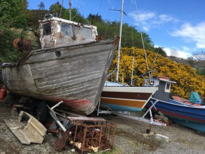 Gairloch on Loch Gairloch (Isn’t that all a bit too tautologous?) is a quaint village where half-hearted commercial fishing sometimes happens. A soft focused sort of place, where a man can muck about on his boat for years on end, high on dry land, with no risk at all of being lost at sea. And removed from the possibility of any domestic involvement whatsoever.