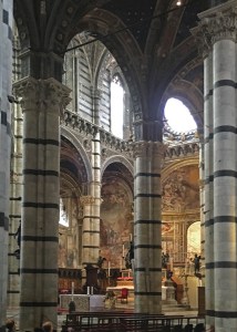 After the plague had passed, work resumed on the cathedral century by century with the great artists of the renaissance making their contribution. Wonderment everywhere, from the marble floor decoration to the illuminated choral manuscripts in the library, the soaring glittering dome, Donatello’s John the Baptist. On and on and on. The people who built this must have believed that the world would never end.