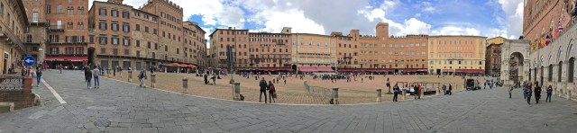 Two remarkable things about Siena. A church and a horse race. Possibly the world’s most bizarre horse race, the palio alla tonda, first took place in 1633. Three quick laps of the village square in under 90 seconds. There is a raffle to match riders with horses. The race is bareback, so riders frequently fall off and horses sometimes finish the race without jockey. The horse is the focus of attention and may be declared the winner ever without a rider.