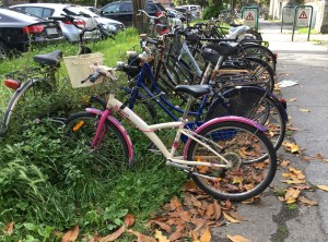 Didn’t decide to grow a beard, just too lazy to spend time keeping tidy. As we are fronting up at La Scala soon to see Idomeneo, thought I should make an effort to be presentable. A charming young ragazza in a nearby barber shop caught my eye and I made a booking. Alas, the trimming was done by a swarthy old guy wearing a pork pie hat while the pretty ragazza looked on. But he did do a good job, nose hairs and all. These bikes were even less tidy than my whiskers. Parked next to the central station, it looks as if all of these people have ridden to the station, fled to Australia and never come back.