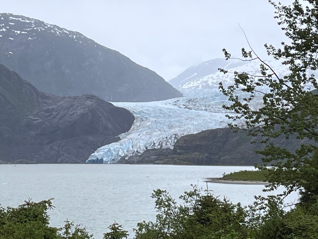 The Mendenhall Glacier is only about 20 km from downtown Juneau. Now but a shadow of its former majesty, this glacier will almost certainly have completely disappeared by the year 2050. After all, we are in the closing stages of the current ice age. Us humans seem to be hastening the process. In the year 1934, the glacier came right down to the vantage point of this photo. We could have touched the ice form here.